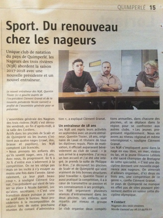 Article paru dans le Télégramme de Dimanche 15 Octobre 2017